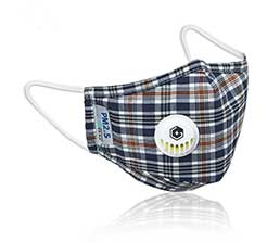 成人純棉立體帶閥口罩-深藍(lán)格子